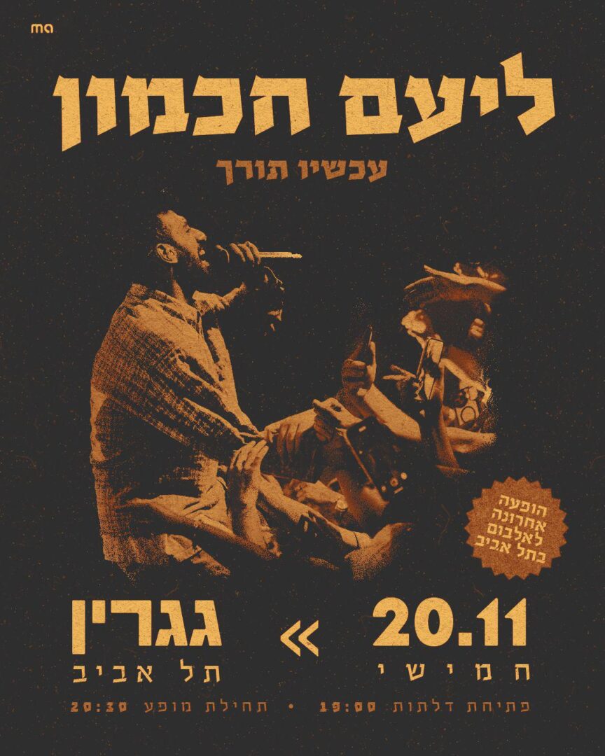 אחרי שנה בה כבש את סצנת המוזיקה הישראלית עם אלבום הבכורה"עכשיו תורך", ליעם חכמון חוזר למועדון הגגרין – למופע אחרון בהחלט שיחתום את תקופת האלבום המדובר.